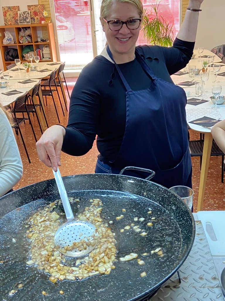 We were lucky enough to get to take a class to learn to make the traditional Valenciana dish paella! Now, you may be asking what exactly IS paella??? The word itself actually means “pan” like… an actual cooking pan. So if you go out and buy a paella pan, you will be buying a pan pan, or a paella paella, LOL!