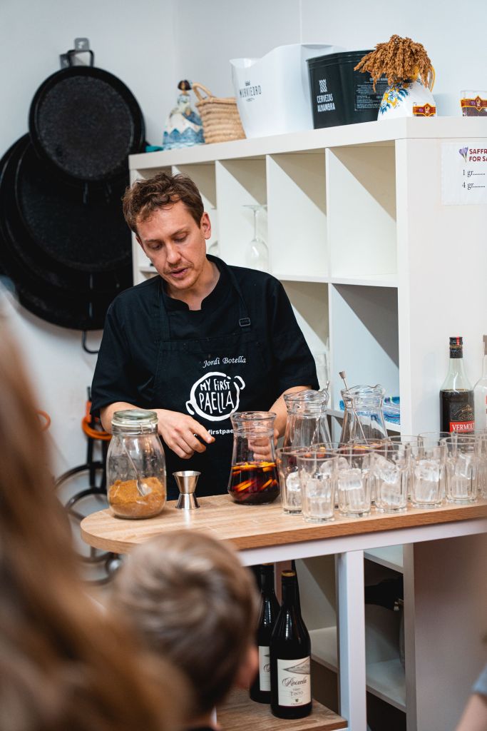 Everyone helped and Jose and Jordi taught us a TON! Bhakti took careful notes we used every week to continue to refine our paella skills. The class… and perhaps it could be said, life in Spain, was a great balance of learning and playing in the kitchen. When the paella was done we all took a shot of anise liquor (a tasty and sweet apple syrup for the kiddos) along with the traditional Valencia toast, “Salut I forca al canut!” which loosely translated means “Health and strength to the dog”. We will leave it to your imagination what exactly they mean when they say the “dog”.